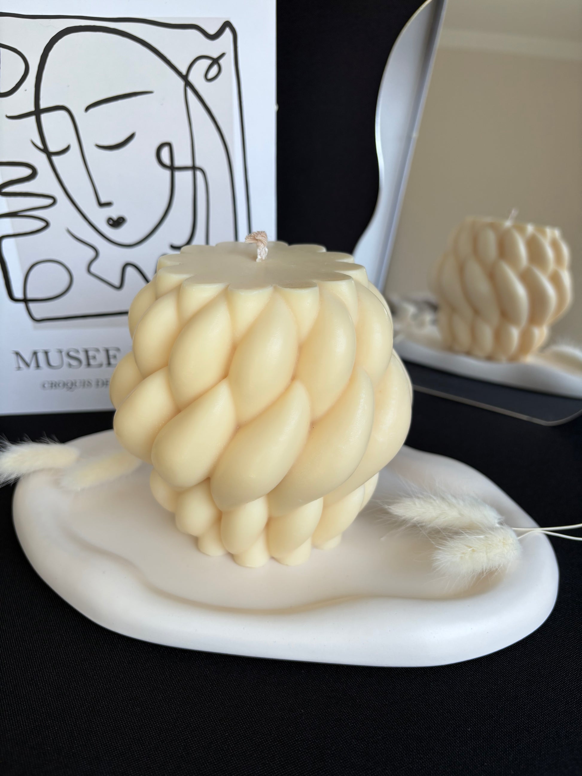 Chaque Bougie Kalicandle est une création unique façonnée avec passion et dévouement. Elles sont méticuleusement confectionnées à la main, alliant l'élégance naturelle à une expérience olfactive raffinée.