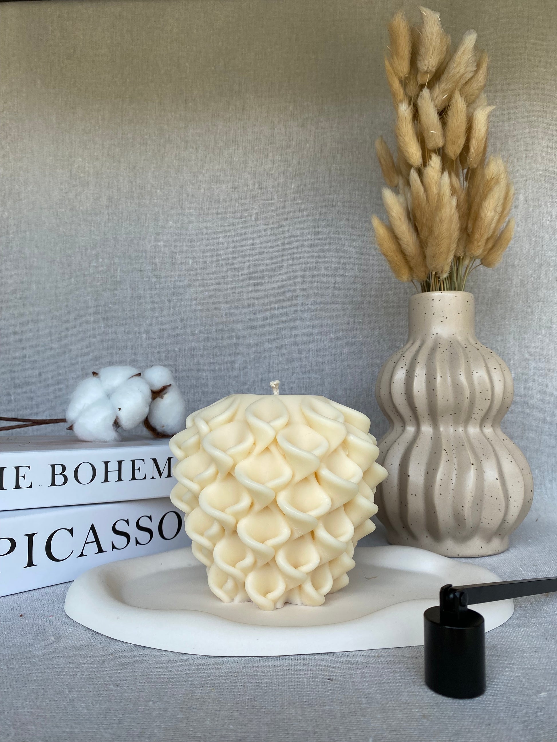 Chaque Bougie Kalicandle est une création unique façonnée avec passion et dévouement. Elles sont méticuleusement confectionnées à la main, alliant l'élégance naturelle à une expérience olfactive raffinée.